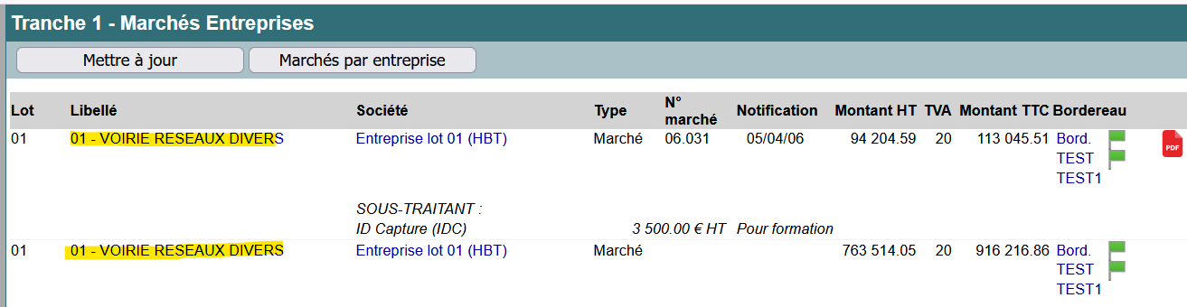 Le sous-dossier Marchés peut permettre le dépôt de documents liés aux marchés des entreprises : acte d'engagement, lettre de commande, contrat de sous-traitance, ...