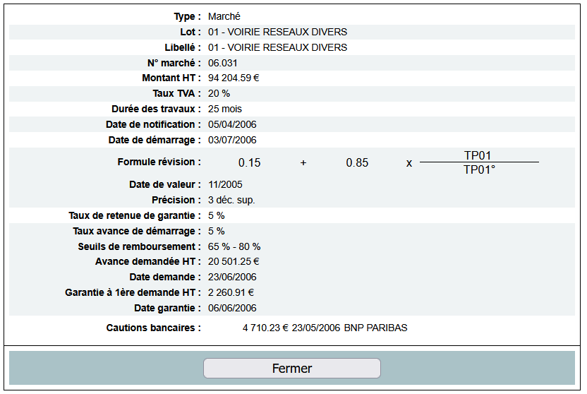 Vous arrivez sur une page descriptive avec les différents éléments financiers de l'entreprise dont :