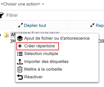 Pour toutes vos actions, faites un clic droit sur le volet gauche de votre fenêtre au niveau du répertoire principal nommé « armoire à plans ».